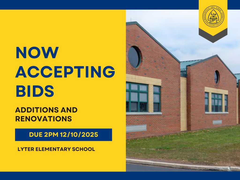 NOTICE Notice is hereby given that sealed bids for construction of the Additions and Renovations to Lyter Elementary School, 900 Spruce Street, Montoursville, PA 17754 will be received at the Administrative Offices of the Montoursville Area School District, 50 N Read More …