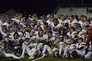 Featured Image (at top): Senior Christian Banks holds the Bridge over his head in celebration after the Battle of the Bridge game. The Warriors regaled in its 52-14 win against its rivalry, the Lancers.