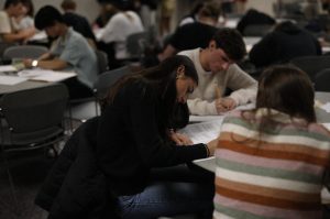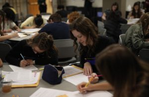 Sophomore Catherine Hittle works through her writing and editing packets during the PSPA Student Journalism Competition on October 23 at Bloomsburg University. Students had only 45 minutes to complete the prompt for their category.A Montoursville photojournalism competitor, sophomore Isaac Erlandson, frames a shot during the competition. Students were required to photograph the event, and if their initial submission gets them to states these are the photos that will be competing.Students from across the area work through timed writing prompts during the competition. Students had limited time to complete their assignments, “It was fun, I thought the prompt was very good,” said Catherine Hittle.A participant concentrates on finalizing her article as students from multiple districts take part in the PSPA news and feature writing challenges.Journalism student, Nadia Farenish, works on her PSPA assignment. “It was a new experience for me so I didn’t know what to expect, but I had a lot of fun with people in journalism,” said Farenish.Seniors Lindsay Garber and Savanna Farley work on their assignments quickly, making sure to finish before the time is up. “The prompt was much better than last year, and I enjoyed my time with everyone in journalism,” said Catherine Hittle when talking about her experience at this year’s PSPA.