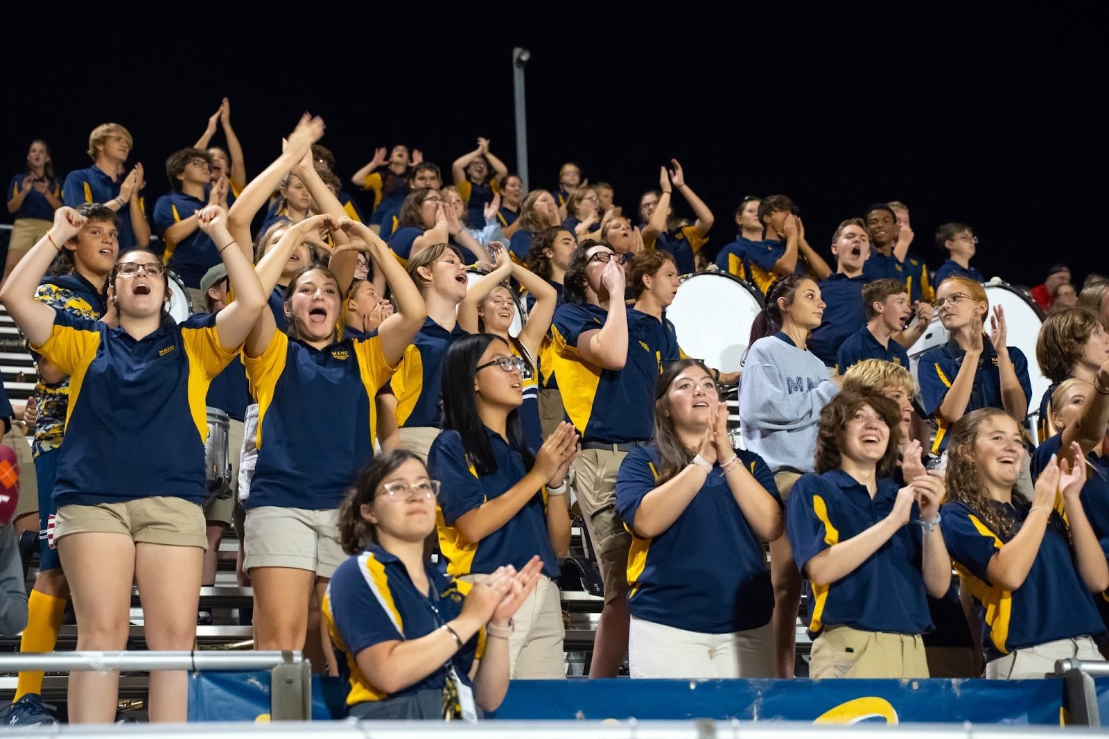 Featured imge (at top): Members of the marching band cheer for the football team during its game versus Danville. The September 5 game resulted in a 33-21 victory for the Warriors.