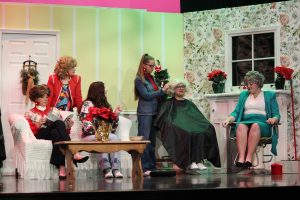 Featured photo (at top): Freshman Zelma Haight (Annelle Dupuy Desoto) shampoos senior Alice Ravert’s (M’Lynn Eatenton) hair during the first scene. Haight was one of two cast members who wore her natural hair during the show. Photo by John Ravert