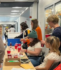 Featured Image (at top): Junior Emilia Minotti and seniors Ali Ravert, Grace Barkauskas, and Lea Beishline were selling Shirley Temples during sixth period lunch. Photo taken by Hannah Lorson