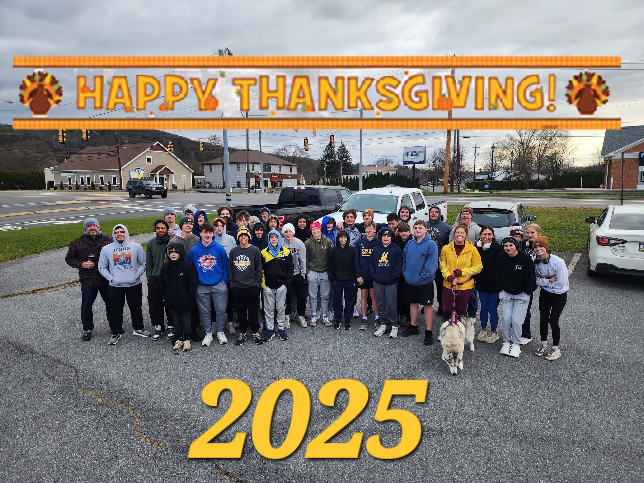 Featured photo (at top): Turkey Trot Participants pose for a photo along with their coaches. The trot was 2 miles long and lasted from 9-11 am. Photo from Montoursville Wrestling on Facebook.